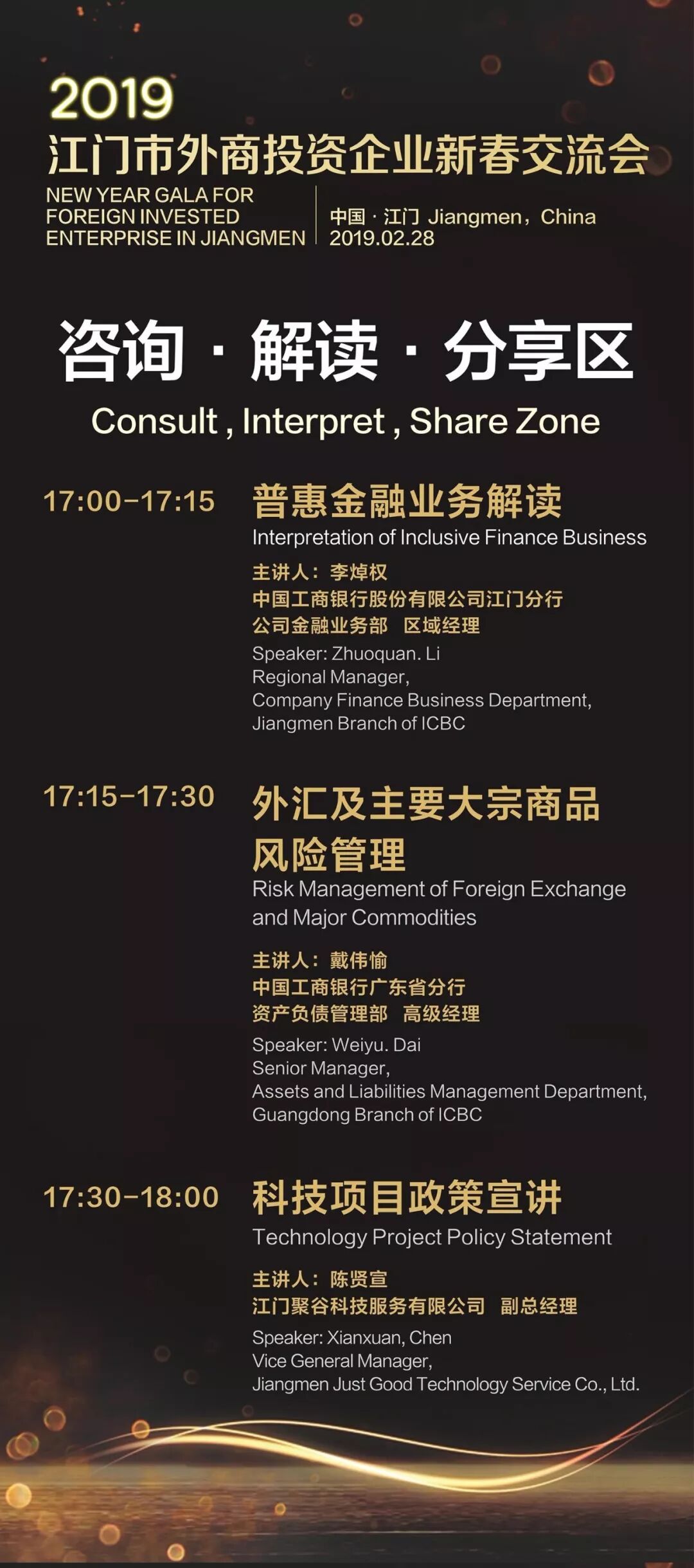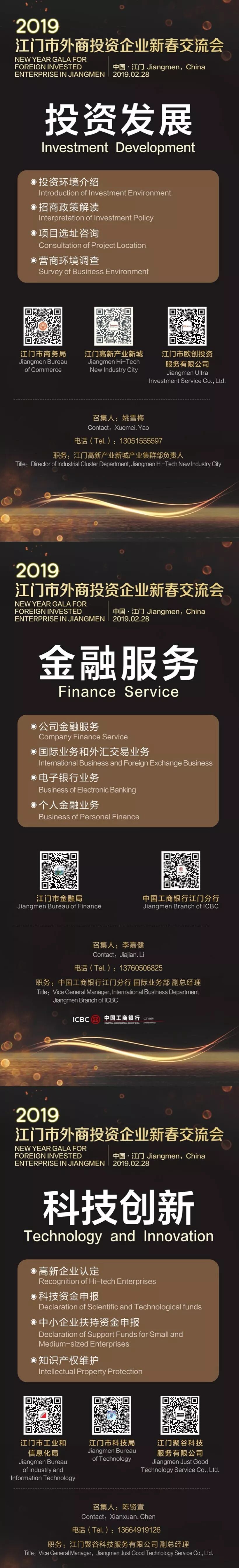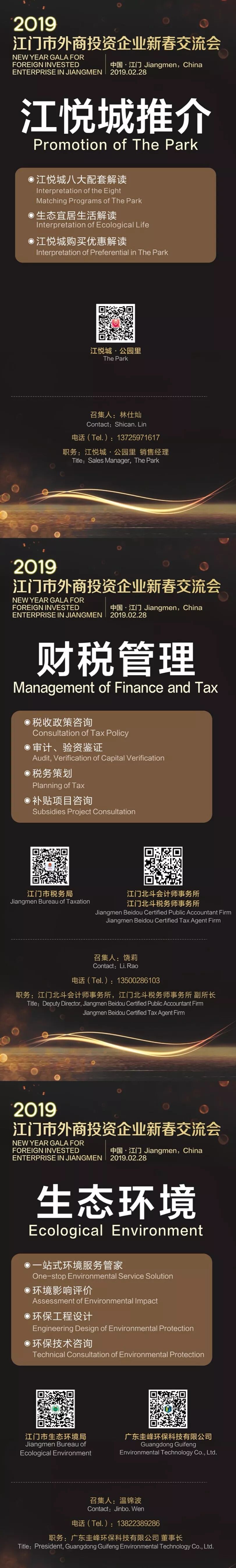 2、政商联合,解决企业八大发展难题:本次活动邀请商务、金融、工信、科技、税务、生态环保、海关、人社、市场监管、行政服务中心等多个政府部门出席,同时由江门高新产业新城、江悦城、中国工商银行、聚谷科技、北斗会计(税务)师事务所、圭峰环保等多家专业企业组成专业团队,为广大参会企业交流企业发展之道。