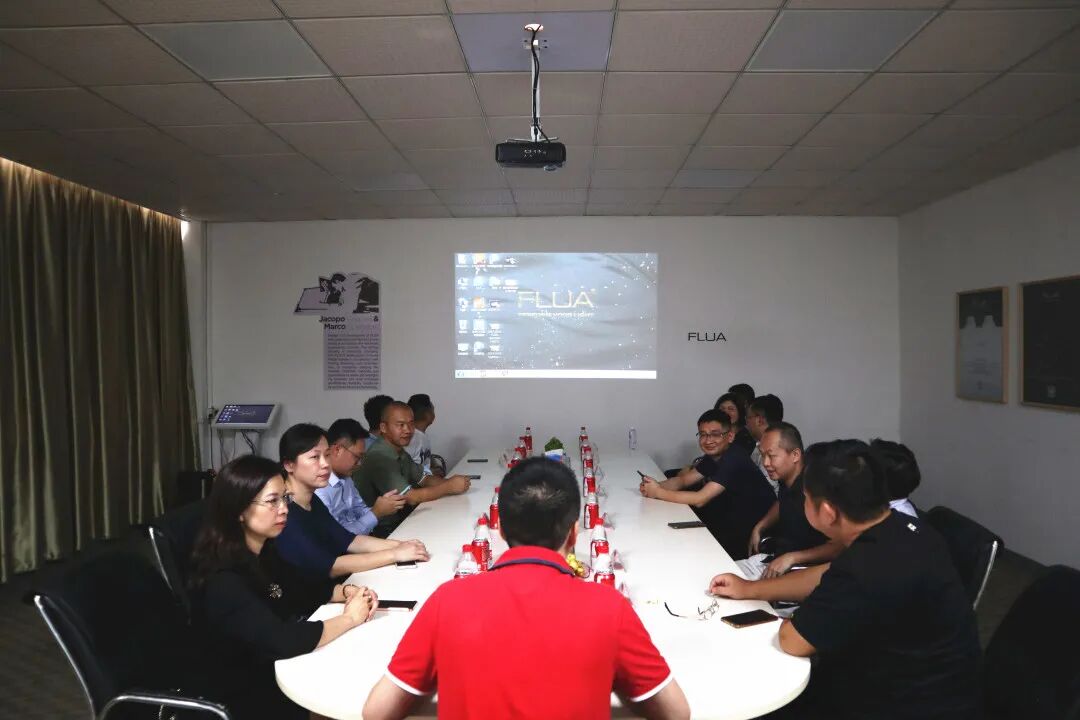 最后,互访团来到协会常务理事单位甫洛照明有限公司,FLUA致力于极简的美学设计诠释光的艺术,立足于高品位、高品质的品牌定位。FLUA的产品涵盖室内外所有照明场景,成为生活与商业照明场景的艺术应用。FLUA在以色列、新西兰、马来西亚、阿联酋等18个国家开设专卖店与开拓市场,在推进中国市场各大城市的版理业务取得良好业绩。座谈会上,创始人、总经理郑凡纯先生向互访团介绍了企业转型升级、从贴牌走向品牌,将话语权从买方转到卖方的做法。双方就江门营商环境、制造业如何在后疫时期破局等话题进行深入讨论,并表示今后能进一步对接协会平台资源,促进协会内循环。