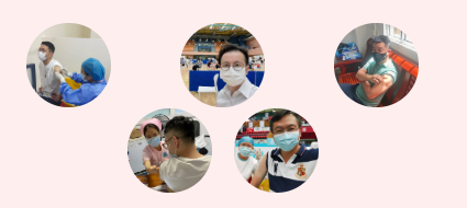 △理事会成员接种新冠疫苗(中间:彭志涛青年会会长,左上:周光耀执行会长,右上:关杰峰青年会执行会长,左下:Phi Kwan理事,右下:杨江州理事)