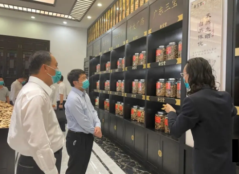 陈选尧和江门市委书记陈岸明一行到访了我会青年会执行会长单位广东省新宝堂生物科技有限公司,在陈皮非物质文化遗产传承人的讲解下,了解企业的历史和陈皮的制造工艺,并对陈皮类产品的开发进行交流。目前该企业在政府的支持下,深耕大健康领域,通过加强与港澳间的合作,拓宽更多海内外市场,将在未来进一步打响“陈皮名片”,增强城市影响力。