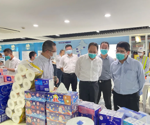 陈选尧一行到访港资卫生纸品生产企业,参观各类纸品的生产线和自动化管理模式,了解属下各系列产品,并交流企业在中港两地的发展情况。