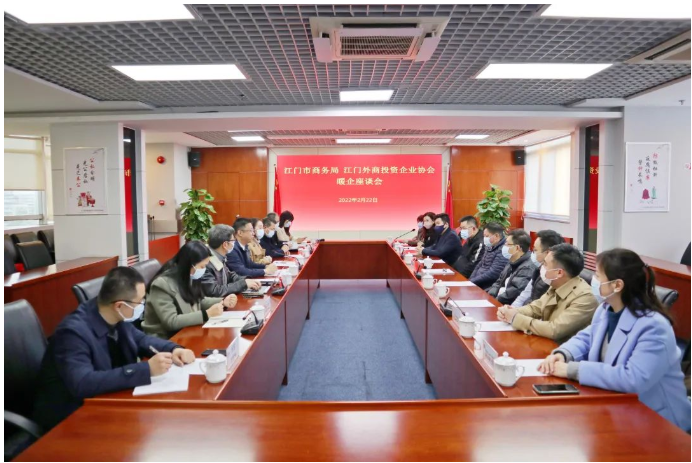 2月22日上午,江门外商投资企业协会会长甄瑞权一行拜访江门市商务局,受到冯一宁局长的热情接待,双方围绕暖企助企主题进行座谈交流。市商务局有关领导及科室负责人、江门外商投资企业协会理事会成员代表参加会议。