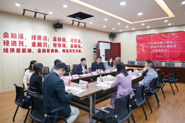 为加强政企对接,加强在跨境金融方面的合作与支持,3月23日,江门外商投资企业协会会长甄瑞权一行拜访市金融局并进行座谈交流。市金融局党组书记、局长何渝,副局长梁育娟参加了会议。